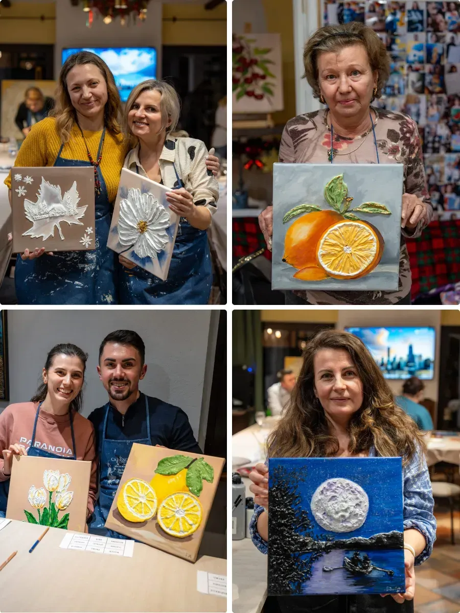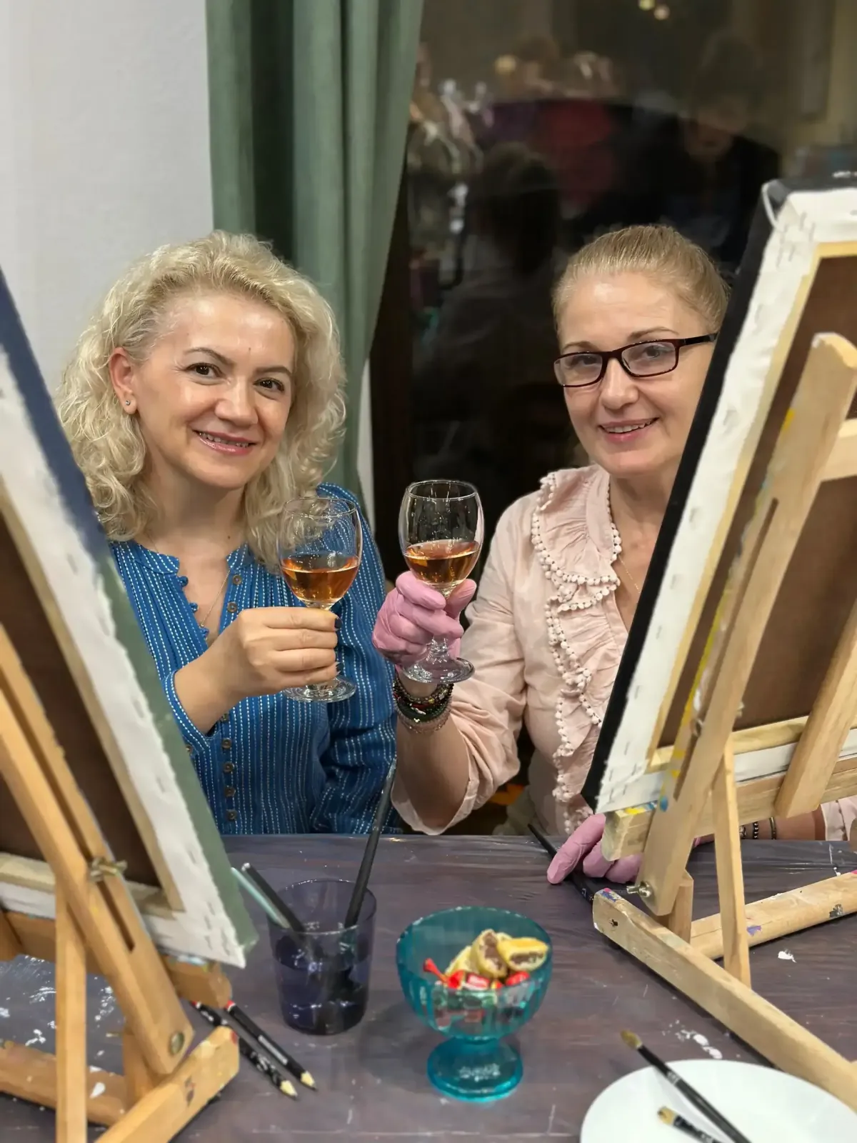O evadare creativă unde te bucuri de proces, de un pahar de vin și de companie plăcută. Nu ai nevoie de experiență, doar de dorința de a te deconecta de la stresul cotidian și de a crea ceva frumos cu propriile mâini.