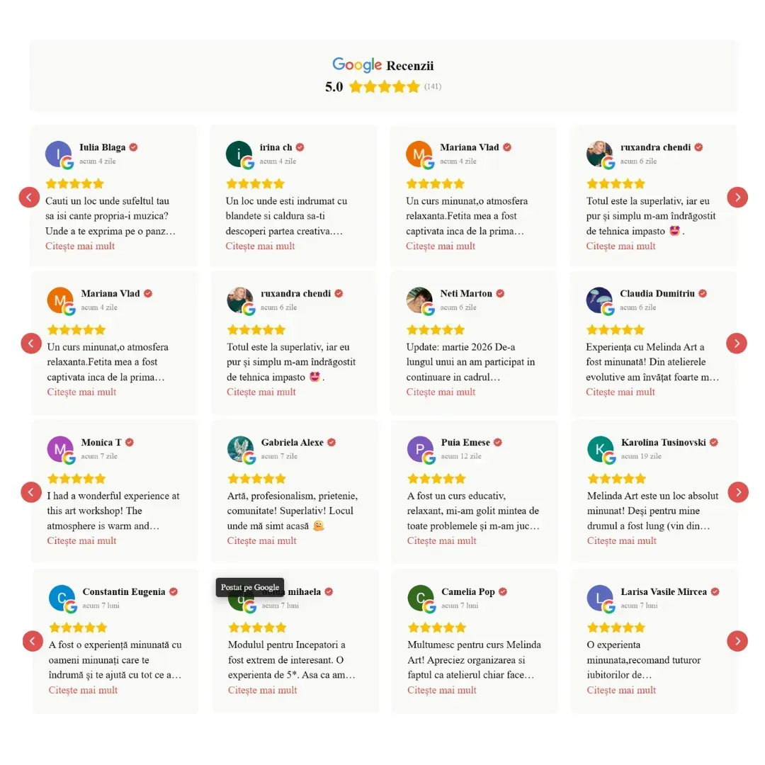 ATELIERUL MELINDA ART: Este „mai mult decât pictură”. Este o experiență memorabilă de relaxare totală și descoperire creativă.