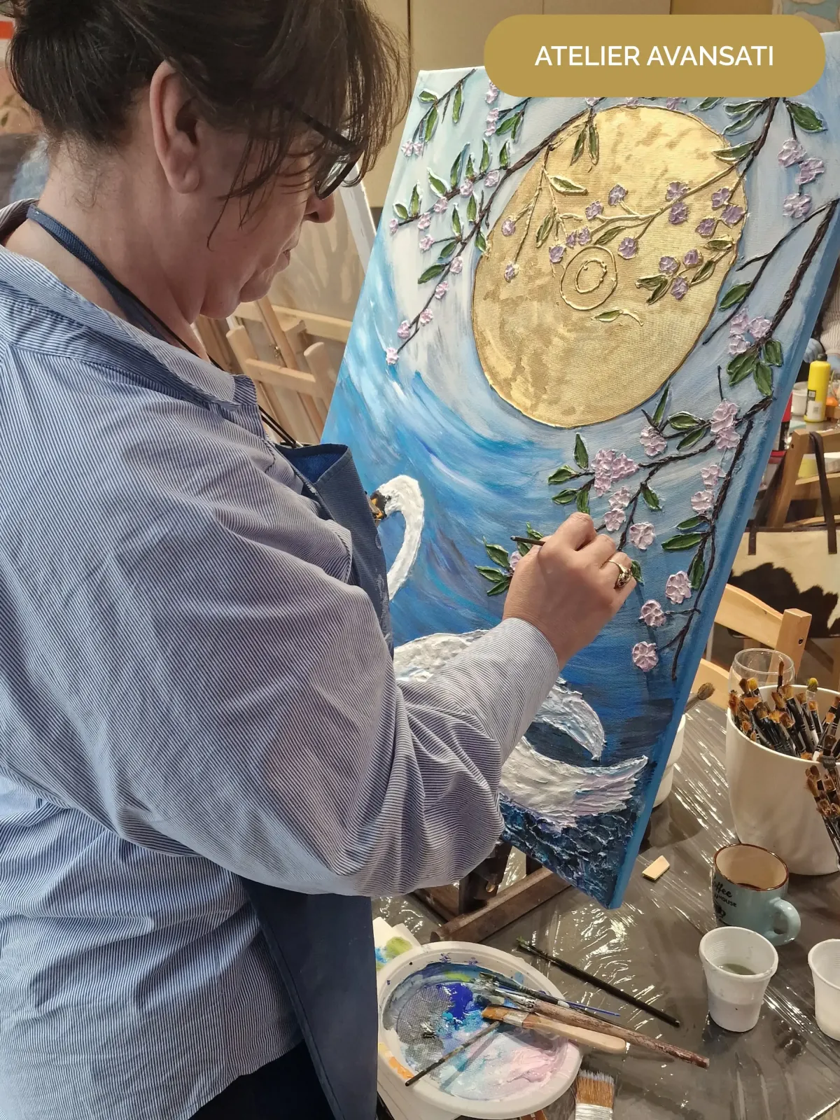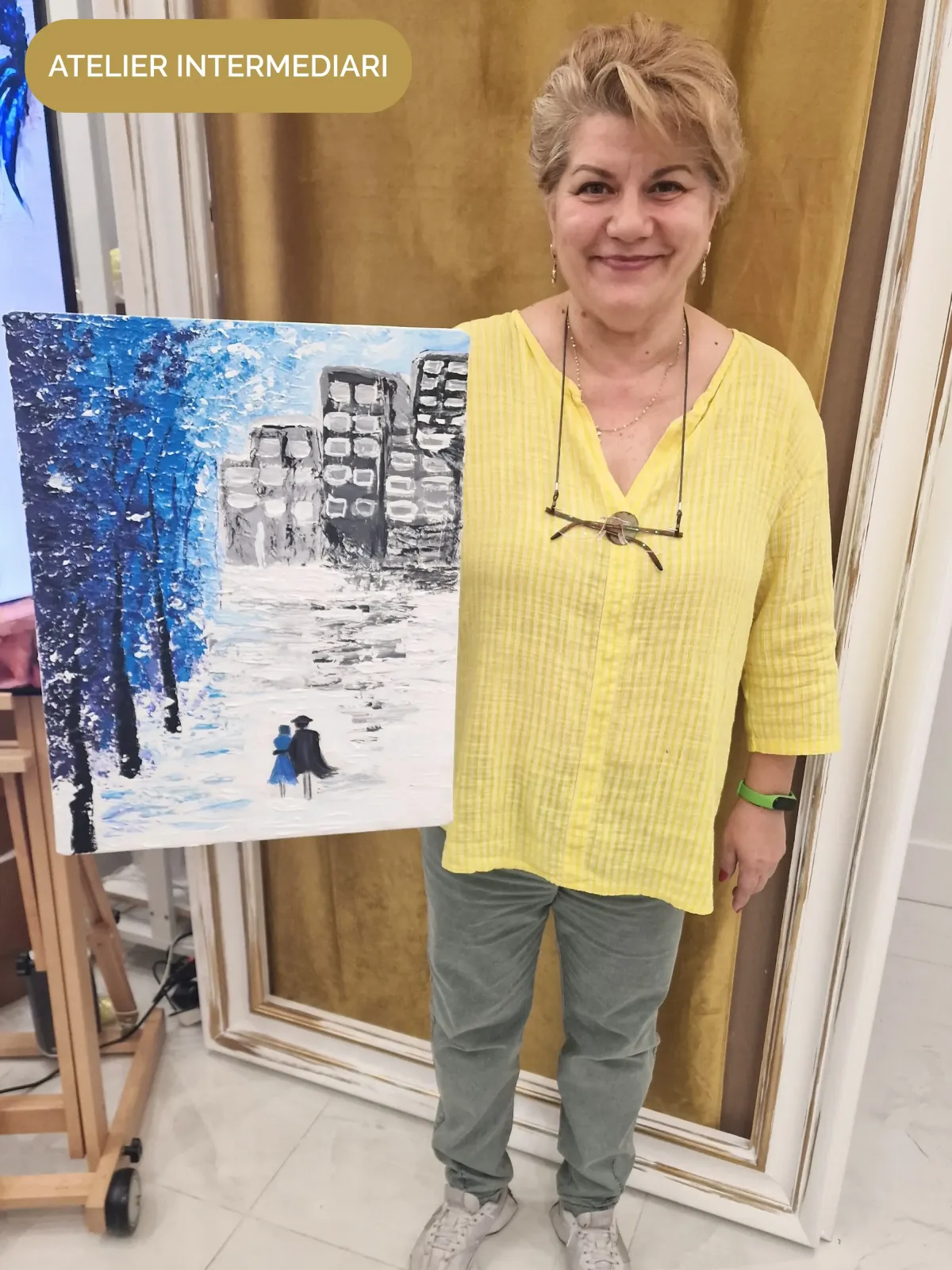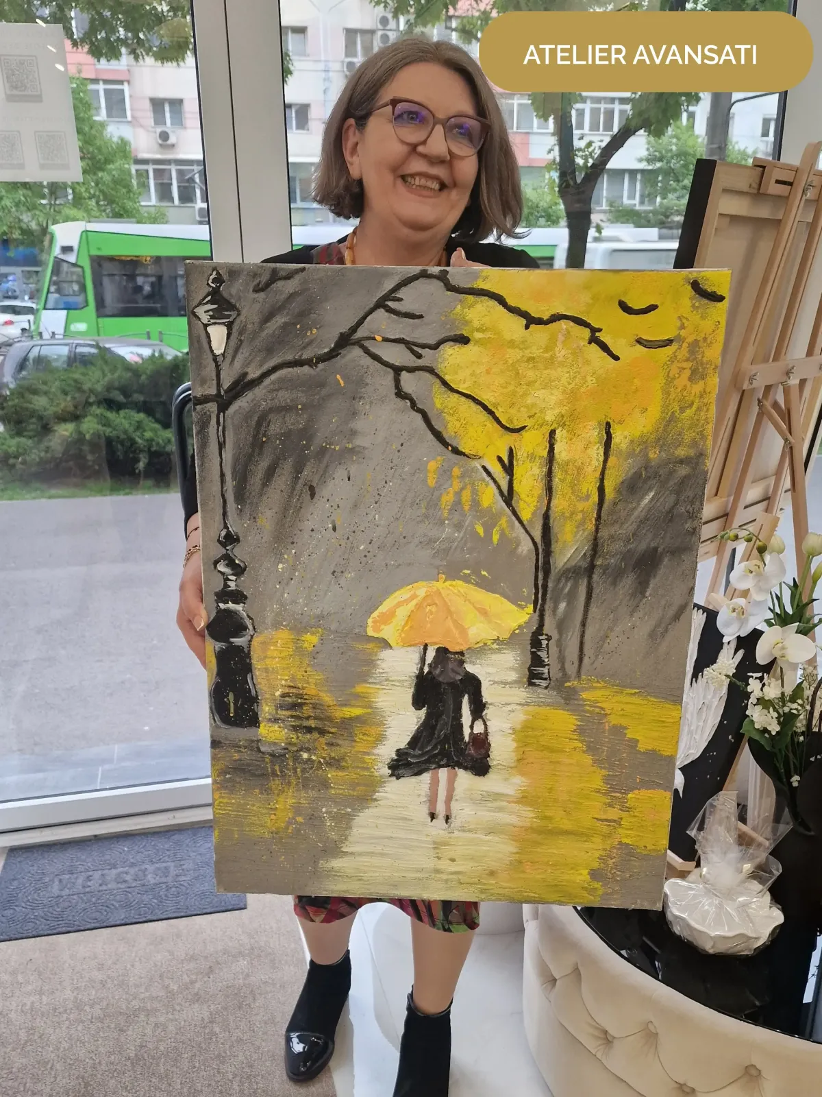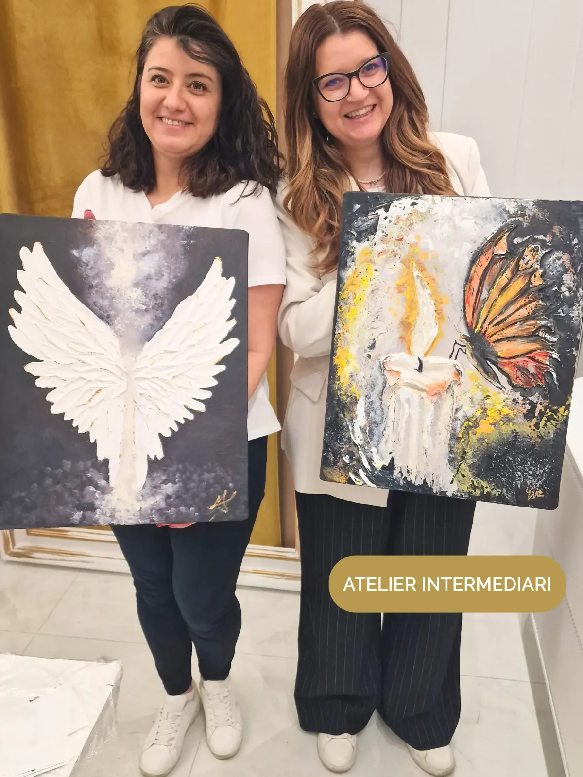 Intri într-o locație de vis primitoare, unde miroase a cafea și culori. Timp de câteva ore, lumea de afară dispare. Ești doar tu, pânza, colegii și o libertate totală de a te exprima. Cu fiecare strat de textură pe care îl aplici, simți cum tensiunea se eliberează. La final, privești cu mândrie o lucrare vibrantă și unică.